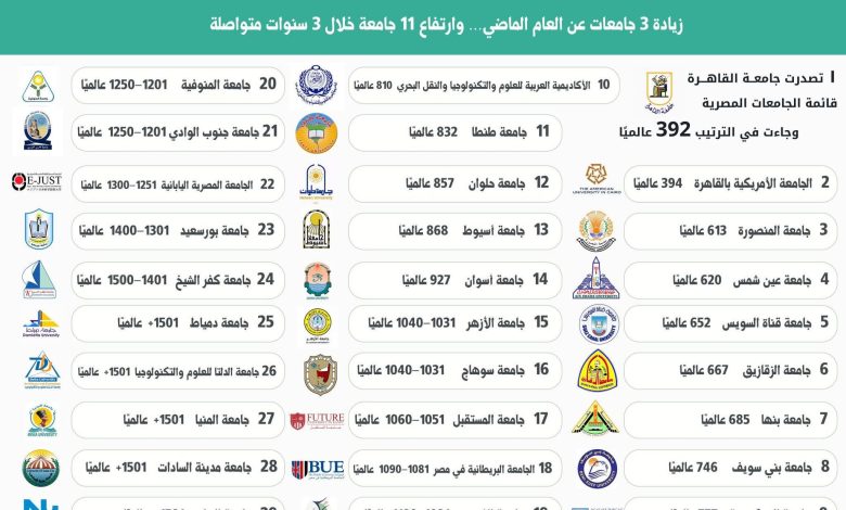 أكمل القراءة »أعلن تصنيف QS العالمي للاستدامة نتائج نسخته الجديدة لعام 2026، والتي كشفت عن زيادة في تمثيل الجامعات المصرية داخل التصنيف؛…
