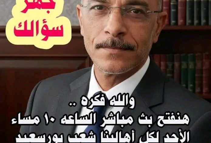 ياسر البدري فرغلي يعلن عن بث مباشر للتواصل مع أهالي بورسعيد والإجابة على أسئلتهم الأحد 10 مساءً