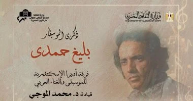 أكمل القراءة »تحيى أوبرا الإسكندرية تحت رعاية وزارة الثقافة ذكرى رحيل الموسيقار الراحل بليغ حمدى بحفل فنى لفرقة أوبرا الإسكندرية للموسيقى والغناء…