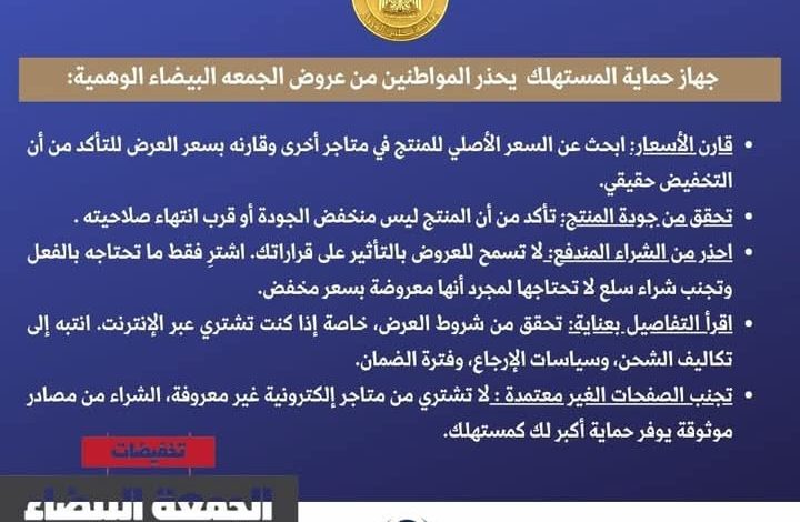 أكمل القراءة »يُجدد جهاز حماية المستهلك دعوته للمواطنين بضرورة توخي الحذر عند التعامل مع عروض التخفيضات والمشتريات، سواء عبر المنصات الإلكترونية أو…