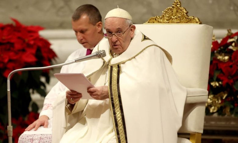قال البابا فرنسيس مساء الأحد خلال قداس عيد الميلاد: “قلبنا الليلة في بيت لحم”، بينما ألقت الحرب بين إسرائيل وحماس بظلالها على الاحتفالات في المدينة بالضفة الغربية.