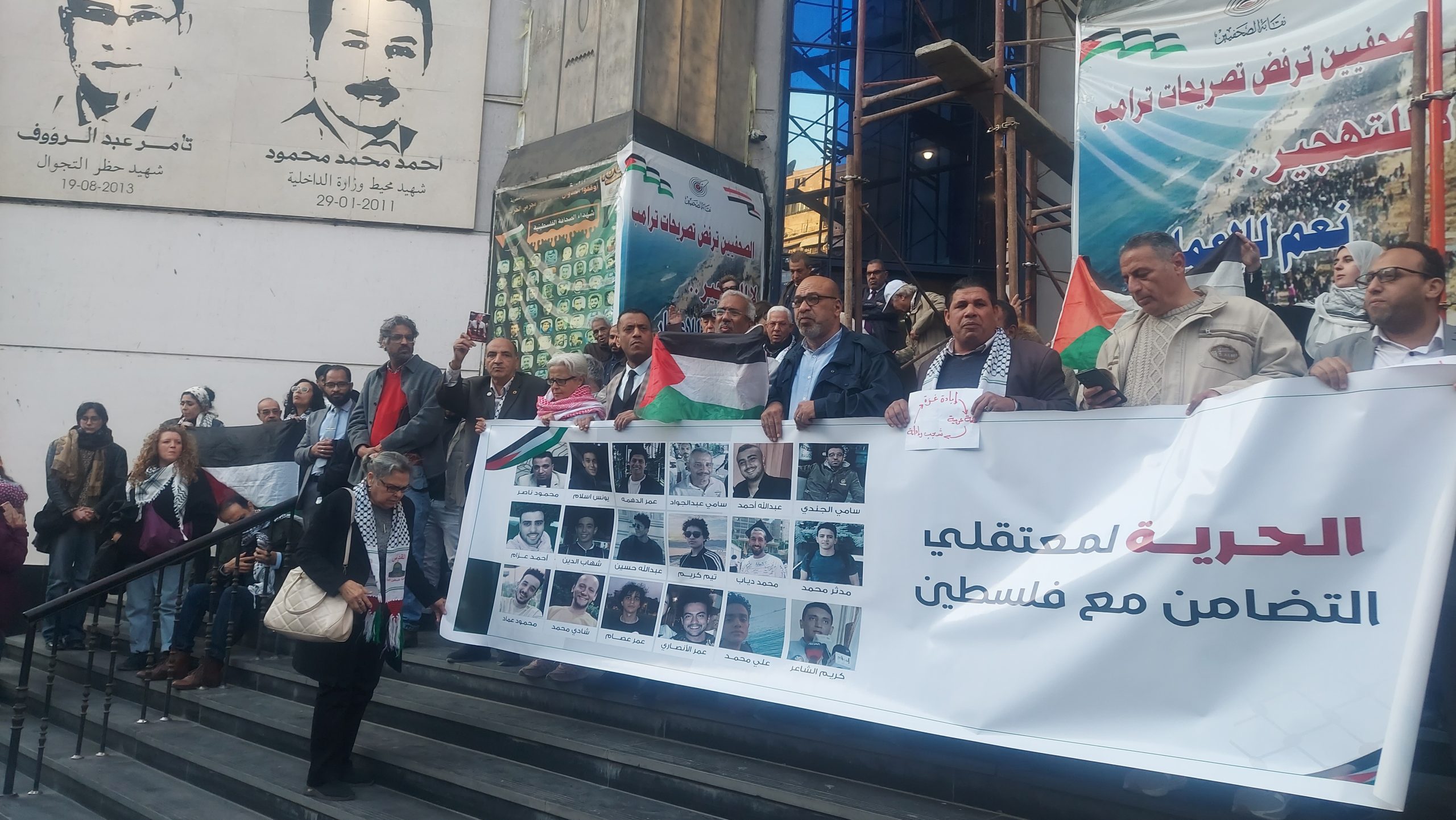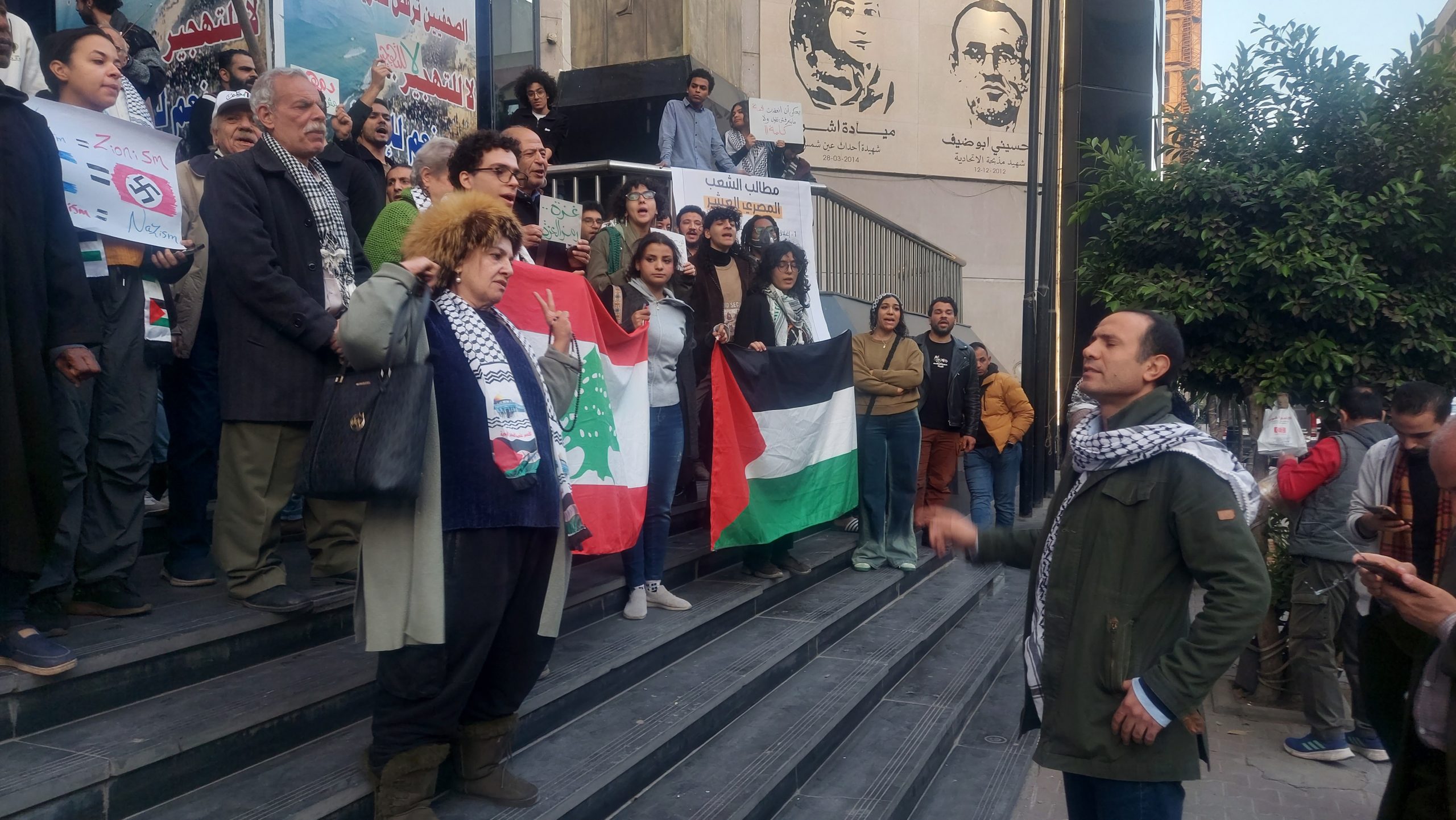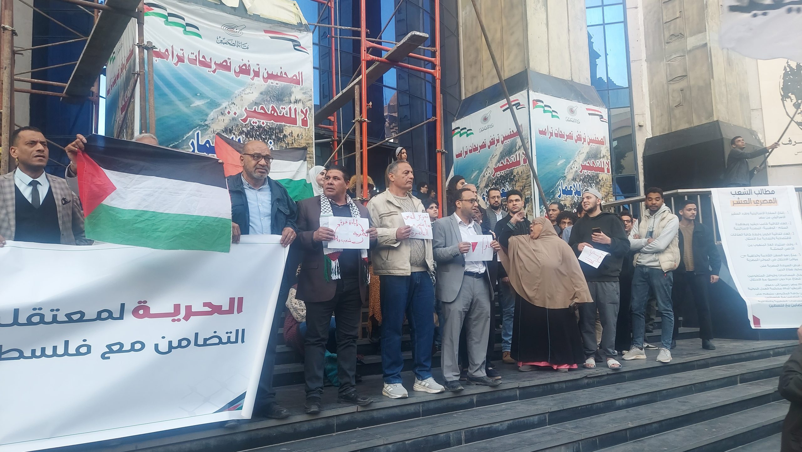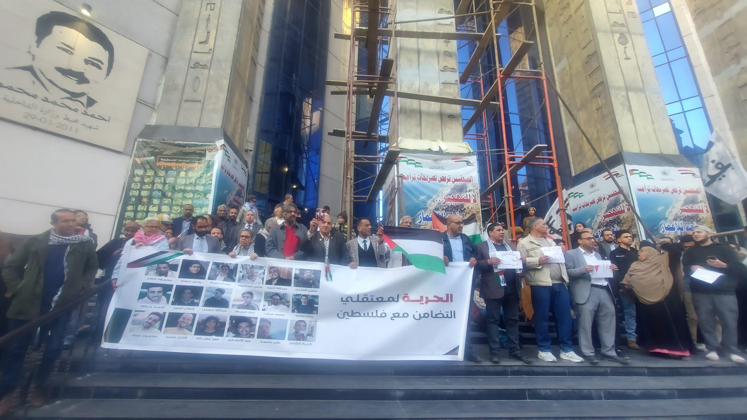 القاهرة ٢٣ مارس – نظم العشرات من النشطاء والصحفيين والسياسيين المصريين، اليوم، وقفة احتجاجية أمام مبنى نقابة الصحفيين بالقاهرة، تحت شعار “من القاهرة.. هنا غزة”، تضامنًا مع الشعب الفلسطيني في ظل استمرار الحرب والحصار والتهجير القسري لأهالي قطاع غزة. وشهدت الفعالية إفطارًا رمزيًا على “عيش ومياه” في إشارة إلى معاناة الغزيين، تلاها هتافات حادة تندد بالعدوان وتطالب بوقف التطبيع مع إسرائيل.