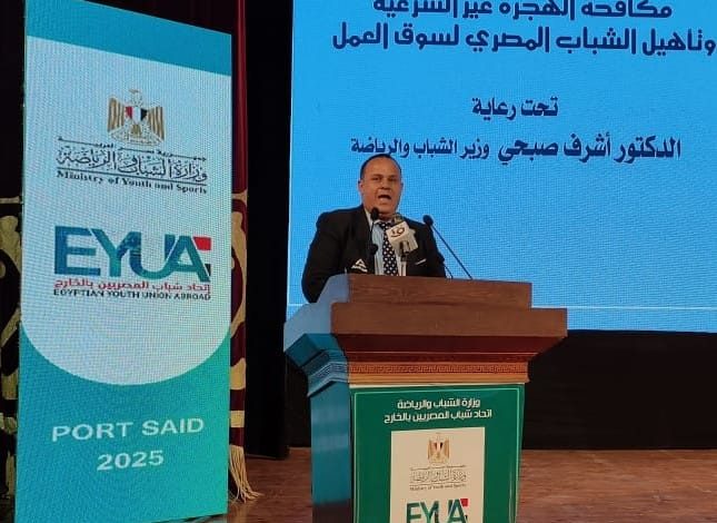 وثمن ” خليل” الجهود الكبيرة المبذولة من الدكتور محمود حسين ، رئيس اتحاد شباب المصريين بالخارج ، لدعم الدولة المصرية في مواجهة الهجرة غير الشرعية ، مشيدا بالدعم الكبير الذي قدمه الدكتور أشرف صبحي وزير الشباب ، لنجاح الملتقي ، وكذلك أيضا جهود وزير العمل محمد جبران ، والسفير نبيل حبشي نائب وزير الخارجية لشئون المصريين بالخارج.