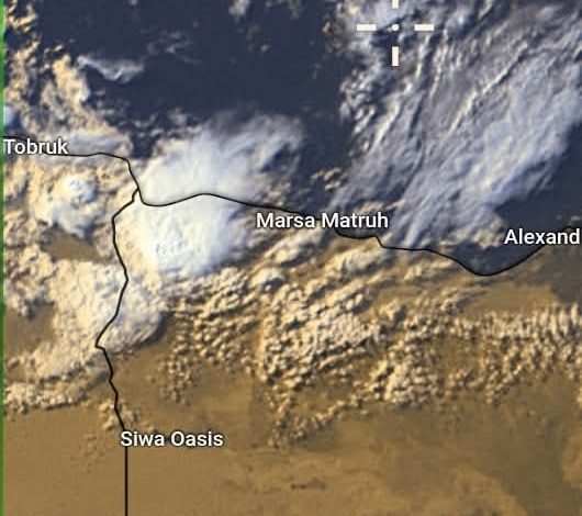 فجر اليوم هب منخفض بارد نادر الحدوث عصف بسواحل مصر الشمالية الغربية مصحوب بهطول امطار غزيرة جدا رعدية وهطول البرد يمتد لاحقا الى انحاء واسعة من الاسكندرية ومناطق اقصى شمال الدلتا خاصة السبت