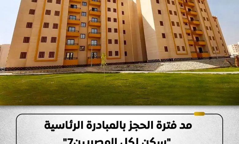 مد فترة حجز الطرح الأول لإعلان المبادرة الرئاسية “سكن لكل المصريين7” للمواطنين متوسطي الدخل ؛ إستجابة لإقبال المواطنين لحجز وحدات سكنية بالإعلان.