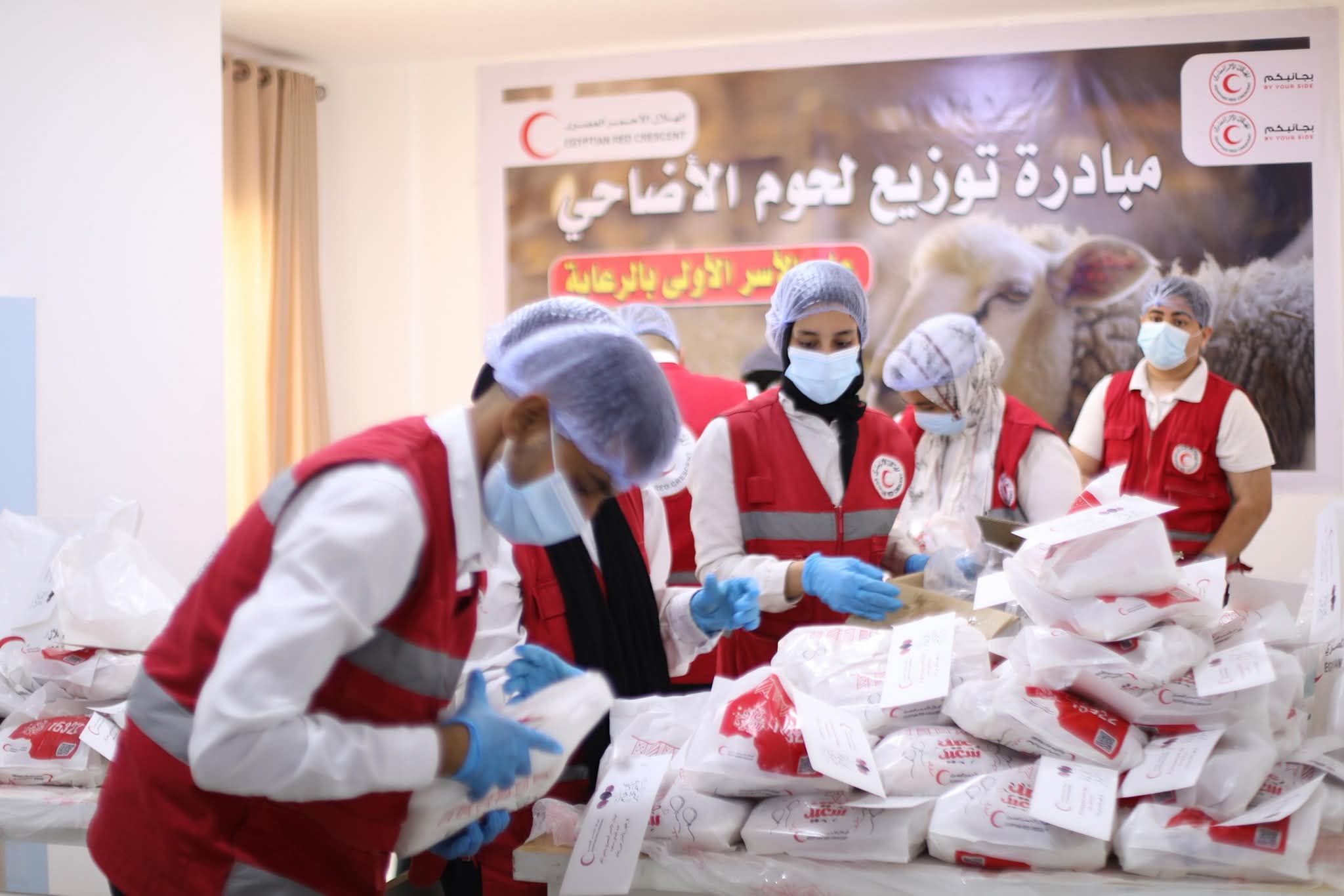 تحت رعاية وزارة التضامن الاجتماعي، قام الهلال الأحمر المصري، وفي إطار مبادرته الإنسانية «عيدنا فرحة وتكافل»، يقوم الهلال الأحمر المصري بتوزيع لحوم الأضاحي، طوال أيام العيد، على الأسر الأكثر احتياجًا، وذلك وفق قاعدة بيانات تضمن وصول لحوم للأسر الأولى بالرعاية.