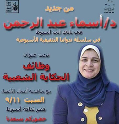 مجلس أمنائها برئاسة الدكتور / عبدالجواد أبوكب علي إختيار الدكتورة أسماء عبدالرحمن أستاذ مساعد الأدب بكلية الآداب جامعة أسيوط لرئاسة لجنة التراث بالمؤسسة.