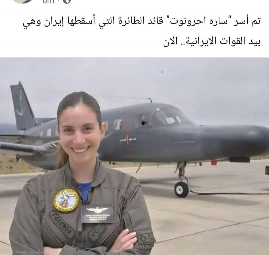 – تبنّت حسابات صورةً لطيّارة بزيّ عسكري -زُعم أنها “سارة”- بعد نجاح عملية السقوط والأسر.