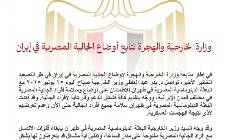 – وزارة الخارجية والهجرة تتابع أوضاع الجالية المصرية في إيران