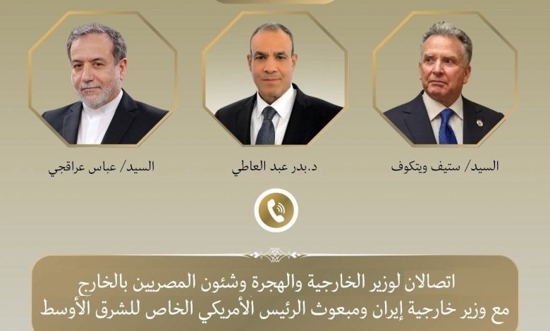 في إطار توجيهات السيد رئيس الجمهورية بتكثيف الاتصالات لاحتواء التصعيد العسكري بين إسرائيل وايران، جرى اتصالان بين د. بدر عبد العاطي وزير الخارجية والهجرة يوم الخميس ١٩ يونيو، مع السيد “ستيف ويتكوف” مبعوث الرئيس الأمريكي الخاص للشرق الأوسط والسيد “عباس عراقجي” وزير خارجية إيران.