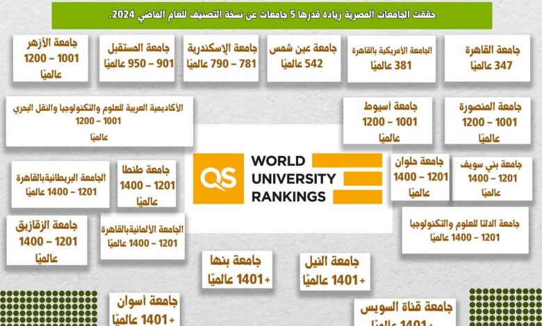 تصنيف QS العالمي يعلن نتائجه لعام 2025: إدراج 20 جامعة مصرية في النسخة العامة للتصنيف لعام 2025