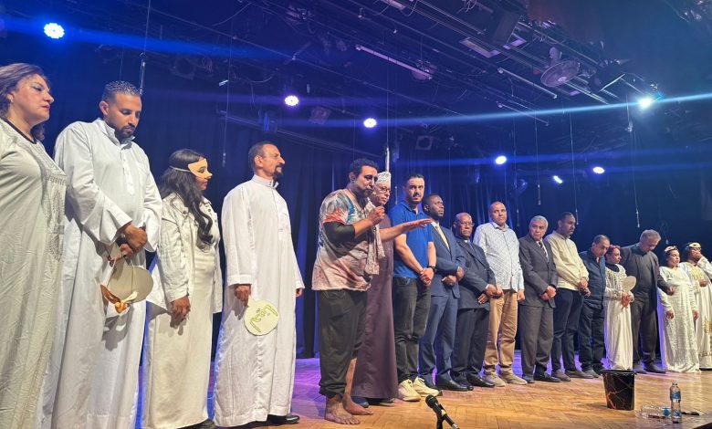 السفير الدكتور عمر المشري وعدد من مستشاري السفارة الليبية يتابعون عرض «مسرحية وجوه»