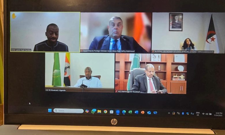 شارك السفير/ ابو بكر حفني محمود، نائب وزير الخارجية والهجرة وشئون المصريين فى الخارج فى اجتماع مجلس السلم والأمن الأفريقي الذي عقد على مستوى القمة بشكل افتراضي.