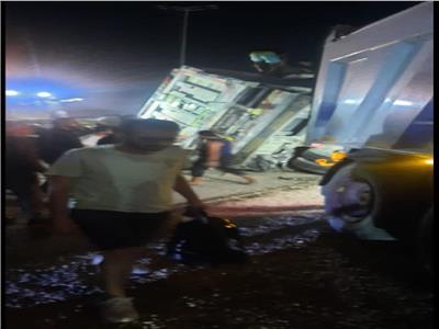 مصرع شخصين وإصابة آخر في انقلاب «تريلا» على سيارتين ملاكي أعلى دائري البساتين