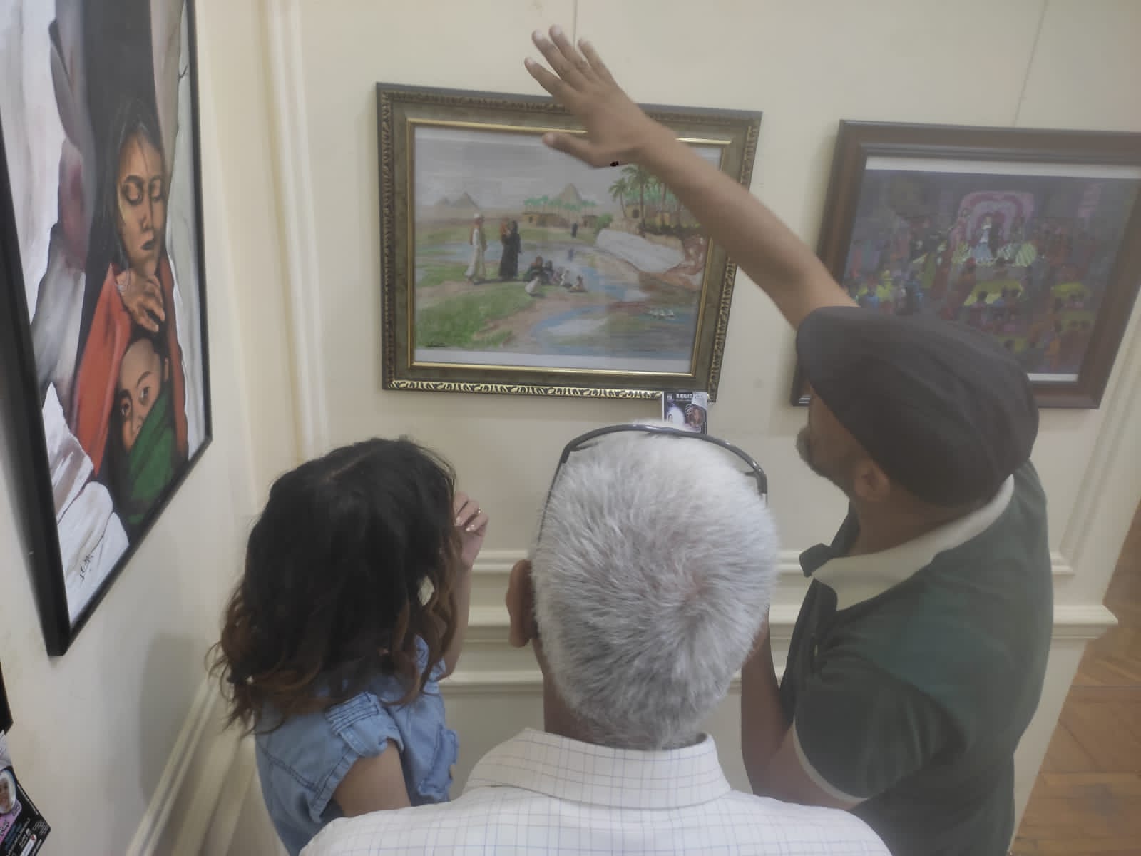 وكانت من أبرز المفاجآت الطفلة الفنانة مريم أيمن، البالغة من العمر 12 عامًا، التي خطفت أنظار الحضور بلوحتين جسّدتا عمق الهوية المصرية، من النيل إلى الريف، بأسلوب فني ناضج يفوق عمرها بكثير.