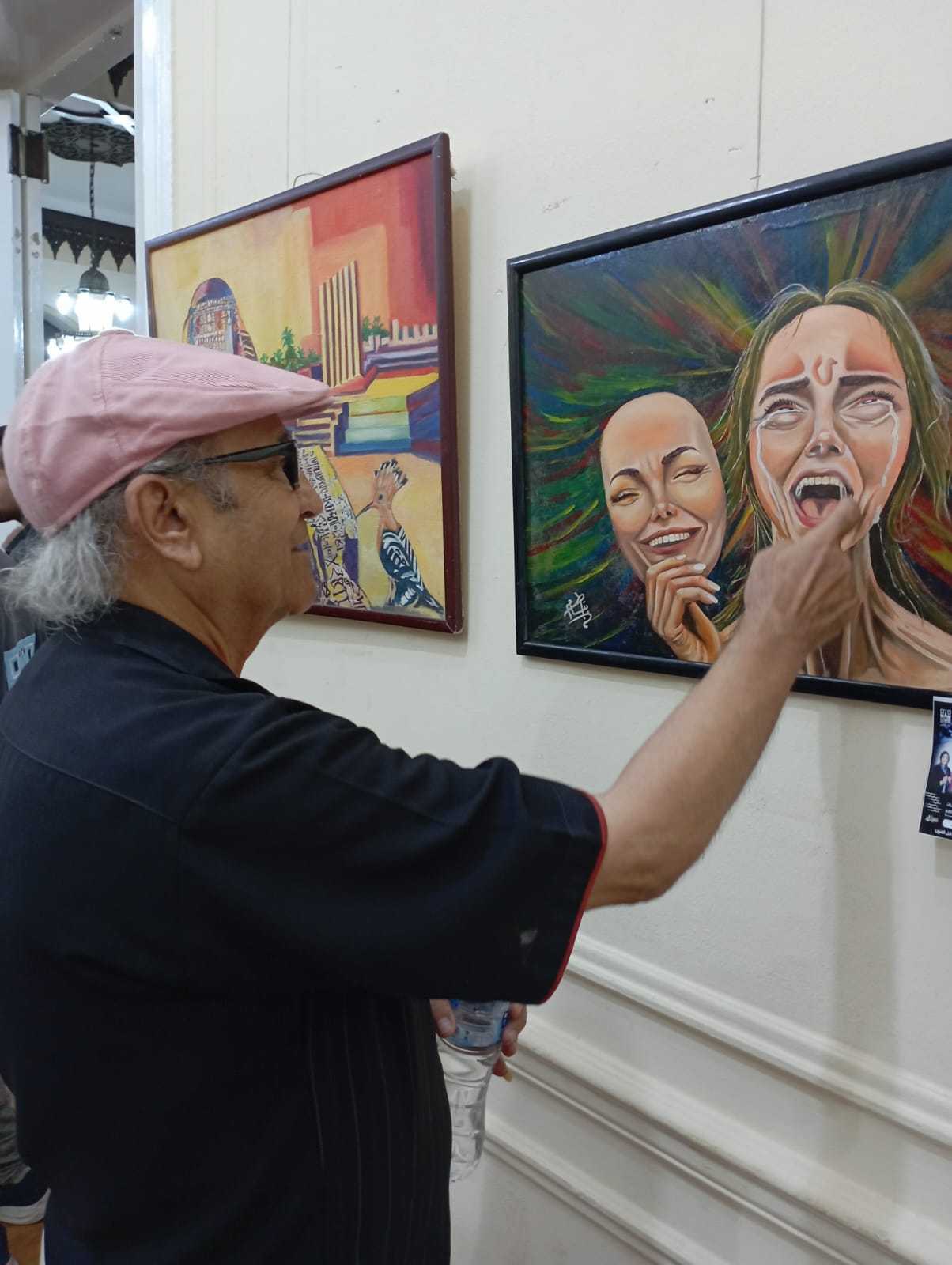 كما لفتت الأنظار لوحة الفنانة ابتسام طه التي حملت عنوان “الابتسامة قناع البكاء”، وجسدت مشاعر القلق والضغط النفسي بأسلوب صادق ولمسة إنسانية مؤثرة، مما جعلها محطة توقف وتأمل للزوار.