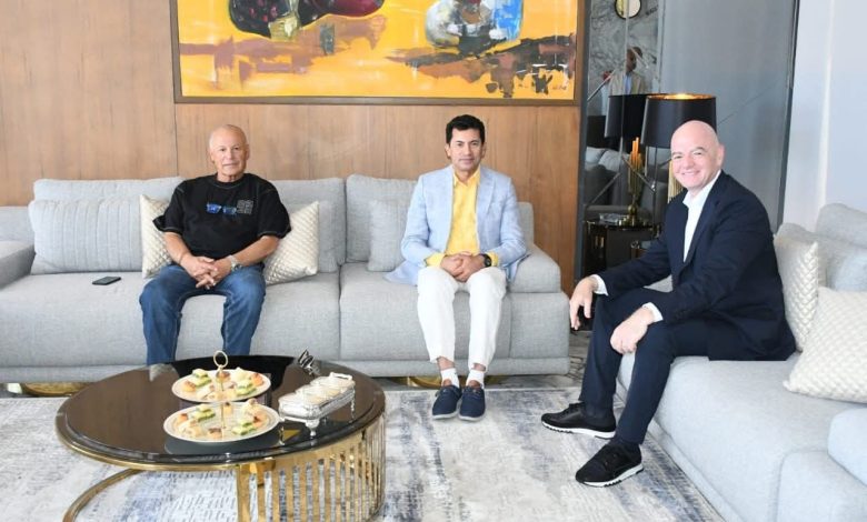 جاء ذلك على هامش لقاء وزير الشباب والرياضة، بالسيد رئيس الاتحاد الدولي لكرة القدم (فيفا)، وذلك بحضور المهندس هاني أبو ريدة، رئيس الاتحاد المصري لكرة القدم.