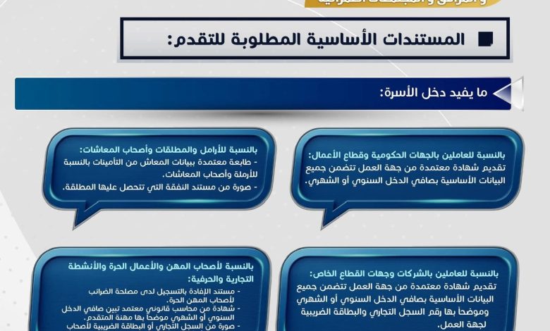وأضافت الوزارة أن المستندات الأساسية المطلوبة للتقدم تشمل أيضاً ما يفيد دخل الأسرة:
