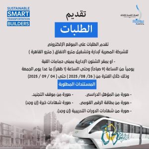 اضغط هنا للتقديم : https://www.cairometro.gov.eg/ar/jobs