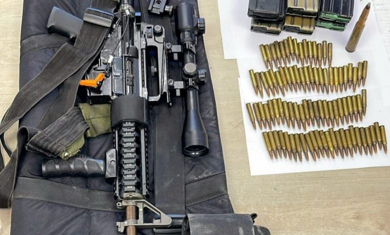 وأضاف المتحدث أن جنود الجيش الإسرائيلي عثروا على الطائرة المسيّرة والأسلحة وصادروها. كما تم تسليم الأسلحة إلى قوات الأمن لاستكمال الإجراءات. وعلى صعيد متصل، ألقت قوات الشرطة الإسرائيلية بمساندة الجيش وحرس الحدود خلال الأسبوع الأخير، القبض على 10 مشتبهين في عدة مناطق وضبطت أسلحة متنوعة بينها بنادق M16 و-M4 مسدسات، وعشرات الأمشاط ومئات الرصاصات. وعبوة ناسفة وغيرها..