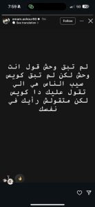 ودخل إمام عاشور على خط الأزمة برسالة عبر “ستوري إنستغرام” كتب فيها: “عندما تكون سيئا عليك أن تعترف ولكن عندما تكون جيدا دع الناس يقولون ذلك ولا تتحدث عن نفسك”.