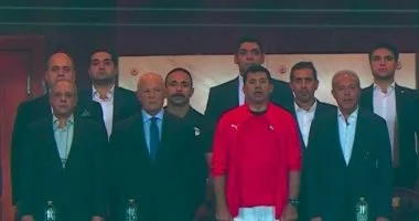 وزير الشباب يرتدي قميص منتخب مصر لمؤازرة الفراعنة في مباراته أمام اثيوبيا
