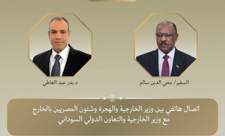 أجرى د. بدر عبد العاطي وزير الخارجية والهجرة وشئون المصريين بالخارج اتصالًا هاتفيا مع السفير محي الدين سالم وزير الخارجية والتعاون الدولي السوداني الجديد مساء يوم الجمعة ١٢ سبتمبر، حيث قدم له التهنئة بمناسبة توليه مهام منصبه الجديد.