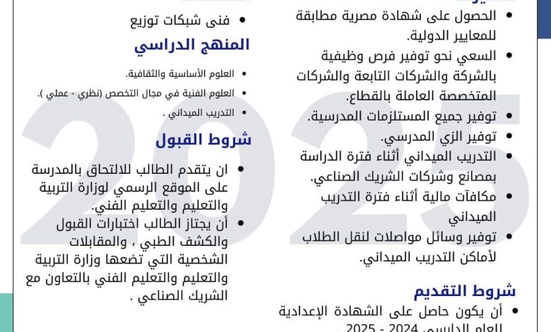 وتنوه الوزارة عن أنه يمكن لطلاب الشهادة الإعدادية لعام ٢٠٢٥/٢٠٢٤، الراغبين في الالتحاق بهذه المدارس التقديم عن طريق التسجيل خلال أسبوع من اليوم عبر الرابط التالي: