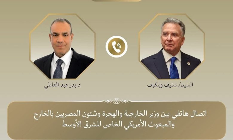 جرى اتصال هاتفى بين د. بدر عبد العاطى وزير الخارجية والهجرة وشئون المصريين بالخارج والسيد “ستيف ويتكوف” المبعوث الأمريكى الخاص للشرق الأوسط يوم الخميس ١٨ سبتمبر، وذلك فى إطار الاتصالات الدورية لمتابعة التطورات فى قطاع غزة والملف النووى الإيرانى، والتنسيق المشترك لخفض التصعيد بالمنطقة.