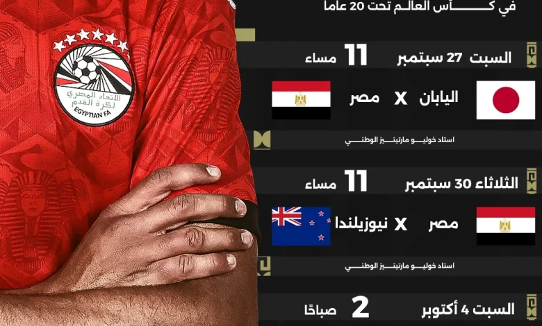 يبدأ منتخب مصر تحت 20 عاماً مشواره في نهائيات كأس العالم للشباب فى الحادية عشرة مساء اليوم، السبت، عندما يواجه منتخب اليابان على ملعب خوليو مارتينيز برادانوس الوطني بالعاصمة التشيلية سانتياجو في الجولة الافتتاحية بالمجموعة الأولى