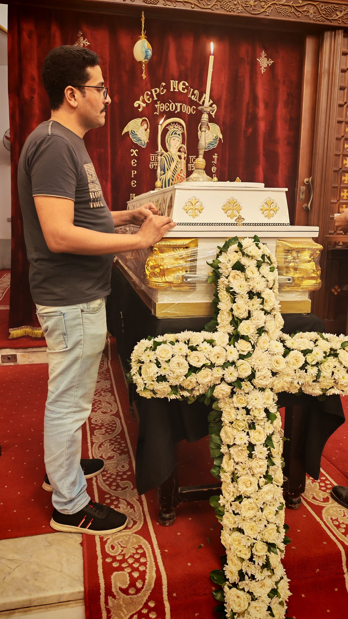 وأقيمت صلاة الجنازة على جثمانه الطاهر بكنيسة العذراء مارمينا بألف مسكن في عين شمس، ثم وُري الثرى بمقابر العائلة بمدينة العاشر من رمضان.