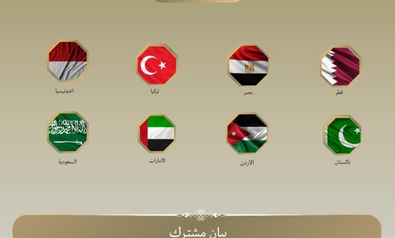 تفاصيل البيان المشترك لوزراء خارجية مصر والأردن والإمارات العربية المتحدة وإندونيسيا وباكستان وتركيا والسعودية وقطر