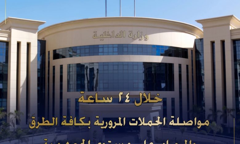 وزارة الداخلية تواصل حملاتها المرورية بكافة الطرق والمحـاور على مستوى الجمهورية .. وتتمكن خلال 24 ساعة من ضبط (110096) مخالفة مرورية متنوعة أبرزها :(السير بدون تراخيص – تجاوز السرعة المقررة- موقف عشوائى – التحدث فى الهاتف المحمول أثناء القيادة– مخالفة شروط التراخيص).. وفحص عدد (1599) سائق تبين إيجابية عدد (77) حالة تعاطى مواد مخدرة منهم.