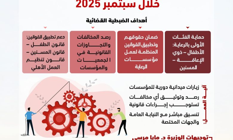 الجدير بالذكر أن الضبطية القضائية بوزارة التضامن الاجتماعي هي آلية رقابية وقانونية تُمكّن مأموري الضبط القضائي من حماية الفئات الأولى بالرعاية “مثل الأطفال وذوي الإعاقة والمسنين”وضمان حقوقهم من خلال الرقابة على مؤسسات الرعاية الاجتماعية، وكشف المخالفات والتجاوزات، وتحرير محاضر قضائية بشأنها بالتنسيق مع الجهات المختصة.