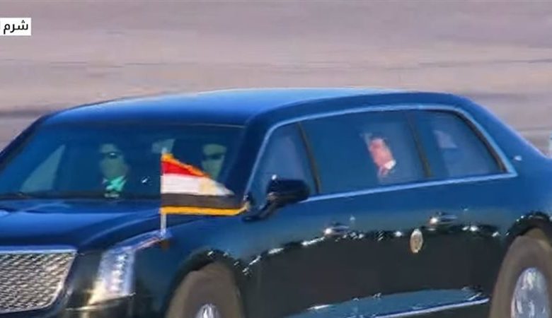الرئيسان المصري والأمريكي في سيارة واحدة.. لحظة وصول ترامب لشرم الشيخ