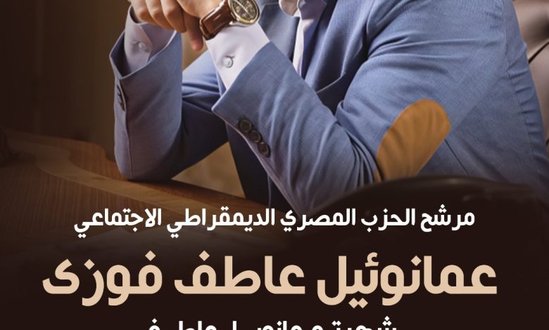أعلن المرشح عمانوئيل عاطف فوزي — مرشح الحزب المصري الديمقراطي الاجتماعي عن دائرة سمالوط ومطاي — تقدمه رسميًا بأوراق الترشح لانتخابات مجلس النواب 2025 يوم الإثنين الموافق 13 أكتوبر 2025، حيث حصل على الرقم 10 في بطاقة التصويت، ورمز رغيف العيش.