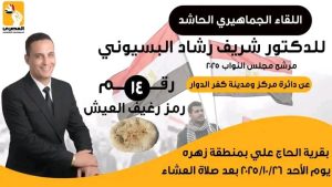 وقال البيسوني في دعوته: “حضوركم دعم، وكلماتكم مسؤولية، وصوتكم أمانة… معًا نستعيد مكانة كفر الدوار ونبنيها كما تستحق.”