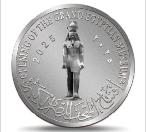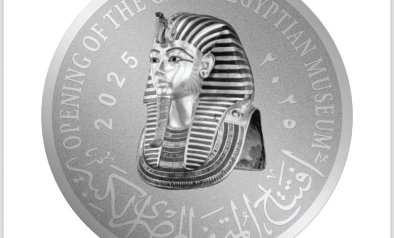 بالصور.. عملات تذكارية غير متداولة من خام الذهب والفضة.. توثق معالم المتحف المصري الكبير