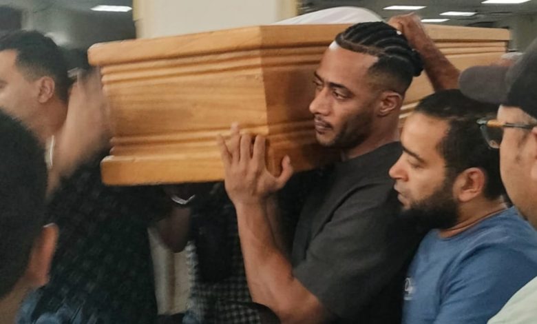 ودعه بالدموع.. انتهاء صلاة الجنازة على والد الفنان محمد رمضان
