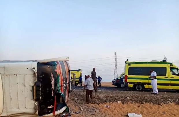 إصابة 6 أشخاص فى حادث انقلاب ميكروباص على طريق بنها شبرا الحر بالقليوبية