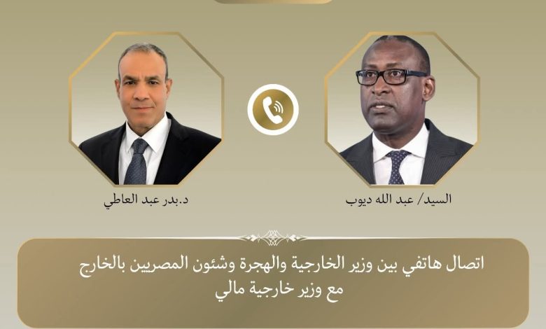 أجرى د. بدر عبد العاطي، وزير الخارجية والهجرة، مساء يوم الأحد ٩ نوفمبر ٢٠٢٥ اتصالاً هاتفياً مع السيد عبد الله ديوب، وزير خارجية جمهورية مالي، لبحث سبل تعزيز العلاقات الثنائية بين البلدين وجهود مكافحة الإرهاب في المنطقة.
