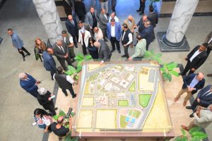 - وأطلعها اللواء محمد الزملوط محافظ الوادي الجديد على مكونات المبني، الذي يضم ديوان المحافظة، مبنى المديريات، ومبنى التعامل مع الجمهور، ومبنى جهات حكومية متعددة، ومبنى إداريا لديوان عام المحافظة، ومولا تجاريا، ومبنى صندوق استصلاح الأراضي، ومحطة طاقة شمسية، ومحطة معالجة صرف صحي، ومحطة تنقية مياه شرب، وبئر مياه شرب، وصالة متعددة الأغراض، ومسرح، وخيمة بدوية VIP كبار زوار، وملاعب رياضية، ونقطة مطافي، ونقطة إسعاف، وخزانات حريق، وبوابات وأسوار المجمع، بالإضافة لأعمال شبكات المرافق؛ وشبكات صرف صحي، وشبكات مياه الشرب، وكابلات كهرباء المباني والطاقة، والطرق.
