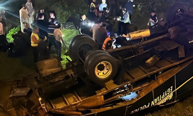 وقع حادث مروري مروع مساء اليوم الإثنين على الطريق الزراعي القاهرة-الإسكندرية شمال القاهرة، حيث انقلبت سيارة ترحيلات تابعة لقوات الأمن المركزي كانت تقل 22 فردا من المجندين والضباط