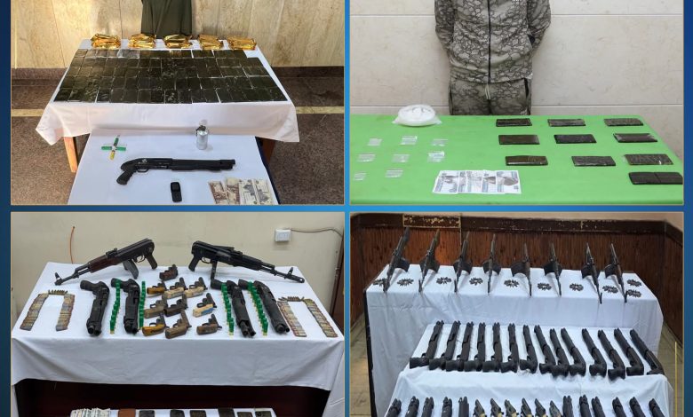 ضبط عناصر بؤر إجرامية من جالبى ومتجرى المواد المخدرة والأسلحة النارية غير المرخصة ببعض المحافظات