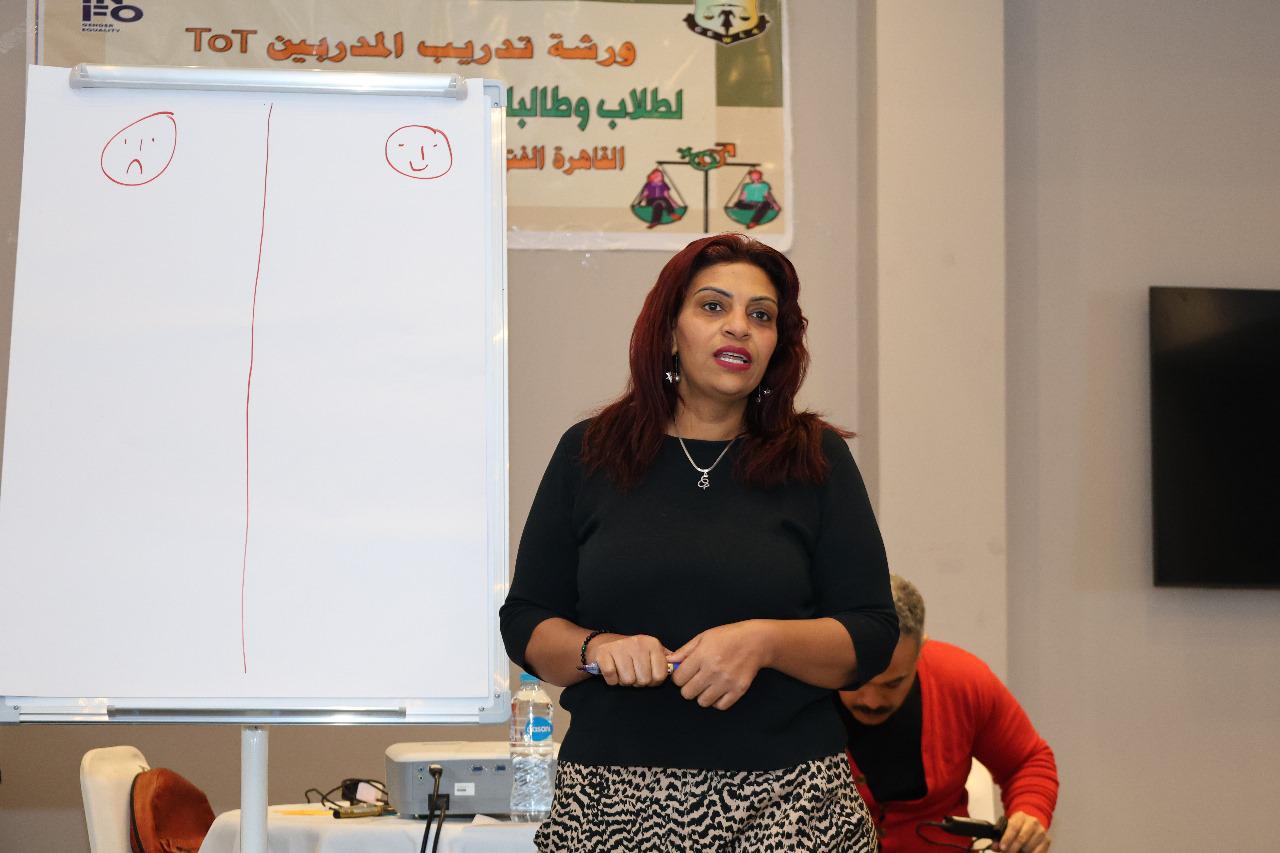 اختتم برنامج الوصول للعدالة بمؤسسة قضايا المرأة المصرية، ورشة تدريب المدربين على مدار أربعة أيام من ٣ إلي ٦ ديسمبر الجاري، قدمت الورشة برنامج تدريبي متخصص في مهارات العرض والتيسير والاتصال والتواصل بمشاركة ٢٧ شابًا وشابة من طلاب وخريجي الجامعات من محافظات القاهرة، الجيزة، الإسكندرية، البحيرة، المنيا، قنا وسوهاج، وبخلفيات علمية متنوعة من كليات (حقوق – آداب علم نفس – علم اجتماع – إعلام – خدمة اجتماعية).