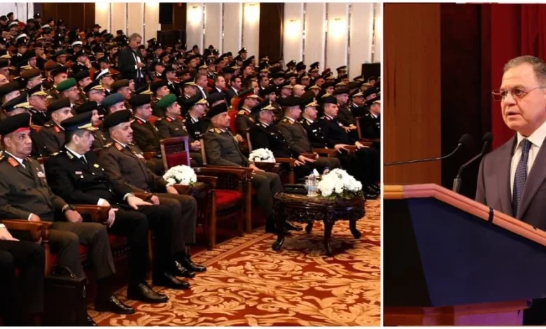 وألقى اللواء محمود توفيق وزير الداخلية كلمة وجه خلالها التحية للقوات المسلحة على ما تبذله من جهود على كافة الاتجاهات الاستراتيجية للدولة، مؤكداً أن التنسيق المستمر يحقق التناغم فى الارتقاء بمستوى الجاهزية لردع كل من تسول له نفسه العبث بأمن الوطن واستقراره، كما أشار إلى أن وزارة الداخلية تعمل جاهدة على تطوير قدراتها، بما يحقق الحفاظ على أعلى مستويات الحالة الأمنية داخل المجتمع وتنفيذ المهام المكلفين بها على أكمل وجه فى ظل التهديدات والتحديات المتلاحقة .