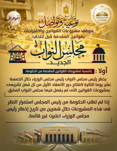 أصدرت وزارة الشؤون النيابية والقانونية والتواصل السياسي، إنفوجراف للتوعية البرلمانية بشأن موقف مشروعات القوانين والاقتراحات بقوانين المقدمة قبل انتخاب مجلس النواب الجديد.