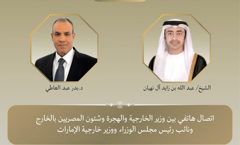 اتصال هاتفي بين وزيري خارجية مصر والإمارات لبحث تعزيز العلاقات الثنائية والتطورات الإقليمية