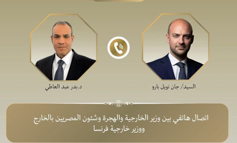 تلقى د. بدر عبد العاطي وزير الخارجية والهجرة وشئون المصريين بالخارج اتصالاً هاتفياً من السيد “جان نويل بارو” وزير خارجية فرنسا مساء الأربعاء ٢٨ يناير لبحث مستجدات الأوضاع الإقليمية.