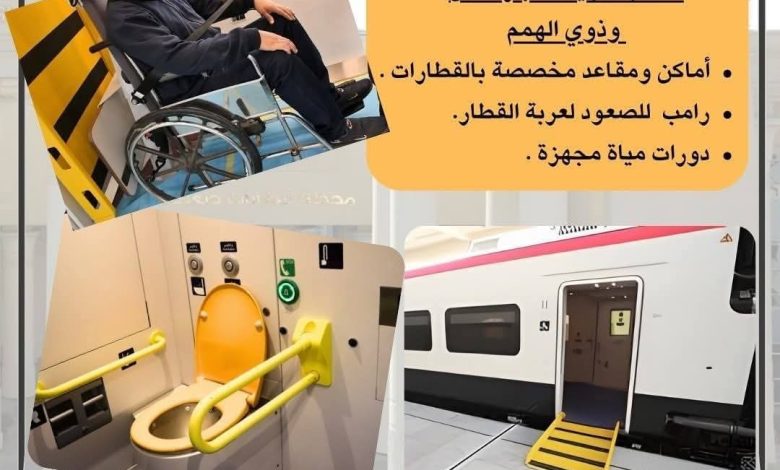 كذلك رفع جودة الخدمة على متن القطارات حيث خصصت الهيئة أربع مقاعد بكل عربة في القطارات العادية لذوى الهمم مع وضع إرشادات واضحة بذلك .